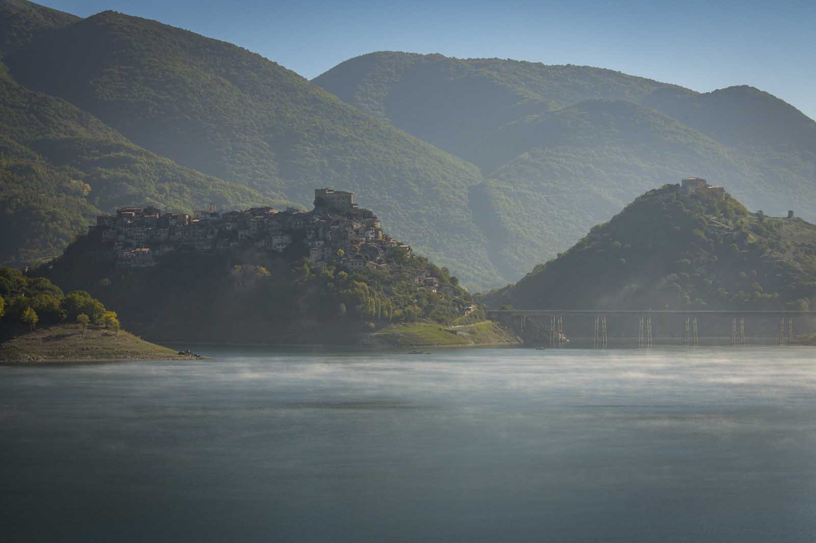 Lake Turano certainly has more articles illustrating its beauty than its resident population. In the province of Rieti, at 607 meters above sea level, the basin is of artificial origin and was created in 1939 with the construction of the Turano dam. Castel di Tora is on the northeastern shore of Lake Turano.